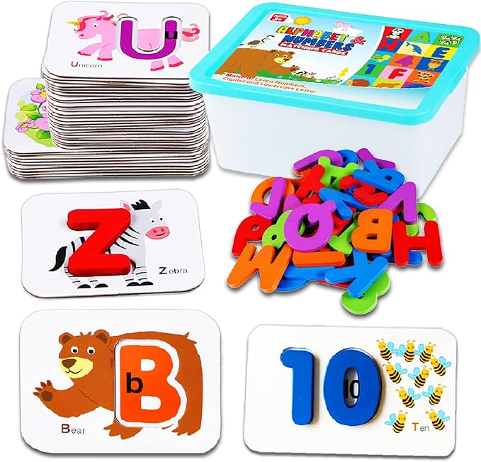 - 🌈【 DURABLE & EASY STORAGE 】 Made with high-quality materials! Comes in a wonderful plastic container for hassle-free storage of the ABC alphabet toddler flash cards and wooden letters and numbers!