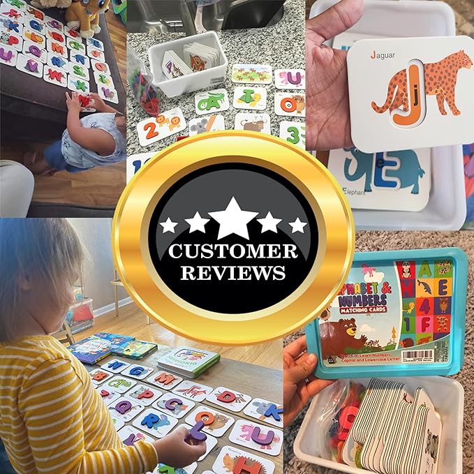 - 🌈【 MATCHING FUN 】Kids will surely have fun matching the wooden puzzle or identifying different animals on the cards, a fun way to Introduce Alphabets learning toys with cute animal image, Numbers to kids with fast learning during the play-time.