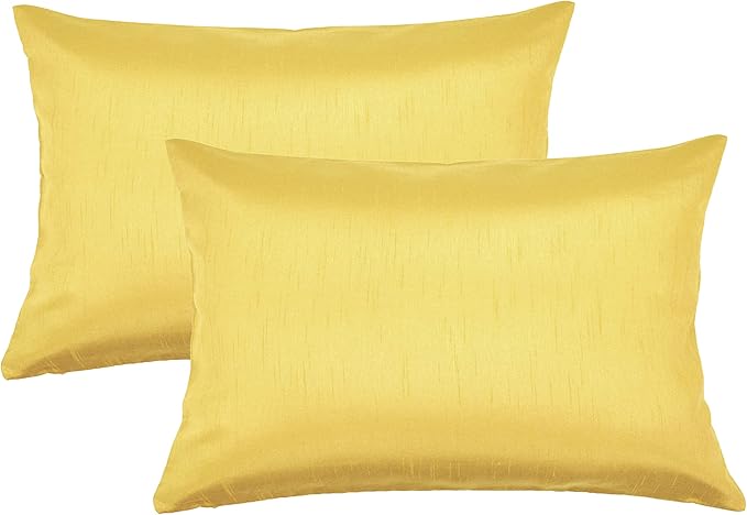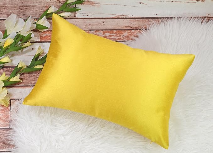 Aiking Home 12x18 Inches Faux Silk Rectangular Throw Pillow Cover, Zipper Closure, Yellow (Set of 2)