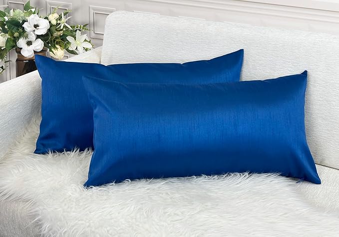 Aiking Home 12x24 Inches Faux Silk Rectangular Throw Pillow Cover, Zipper Closure, Royal (Set of 2)
