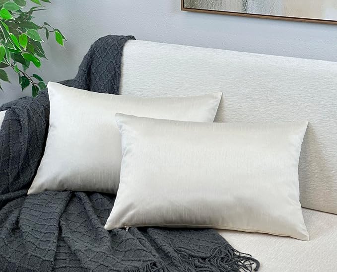Aiking Home 12x18 Inches Faux Silk Rectangular Throw Pillow Cover, Zipper Closure, Ivory (Set of 2)