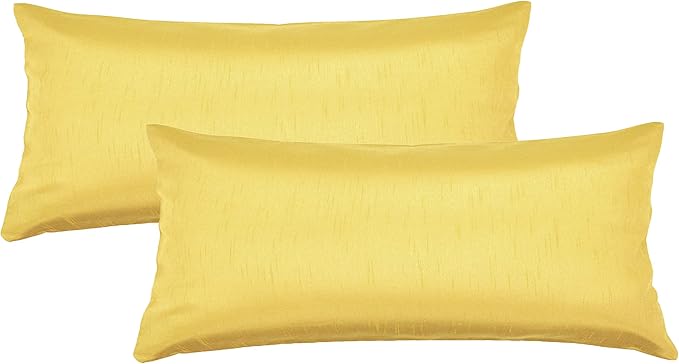 Aiking Home 12x24 Inches Faux Silk Rectangular Throw Pillow Cover, Zipper Closure, Yellow (Set of 2)