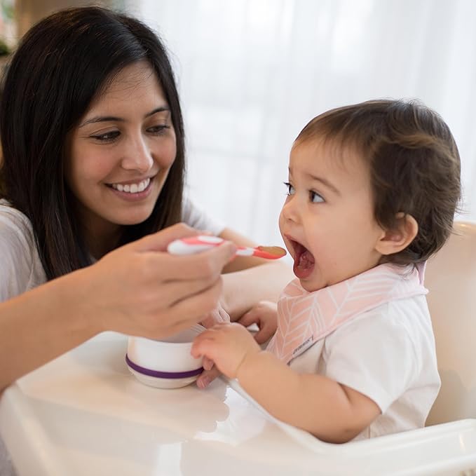 - Flexible, shallow scoop makes mealtime easier for baby.