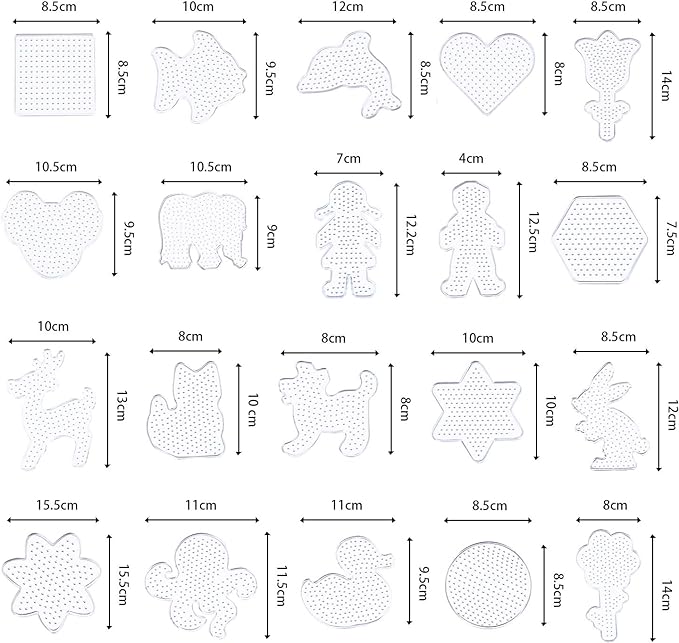 - Quantity: Package includes 20 pieces of fuse beads pegboards with 20 pieces colorful cards, 10 keychains, 10 hang ropes, 20 hang circles,4 pieces white beads tweezers.