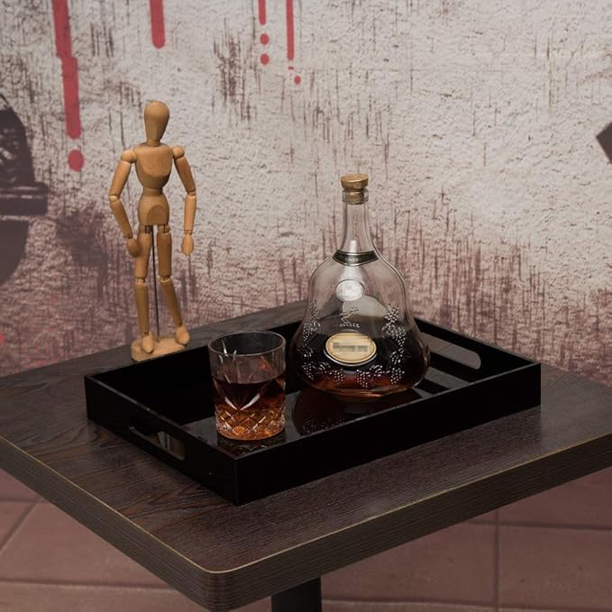 Glossy Black Sturdy Acrylic Serving Tray with Handles - 12x12 Inch Multipurpose Tray for Coffee, Appetizers, Breakfast, and More