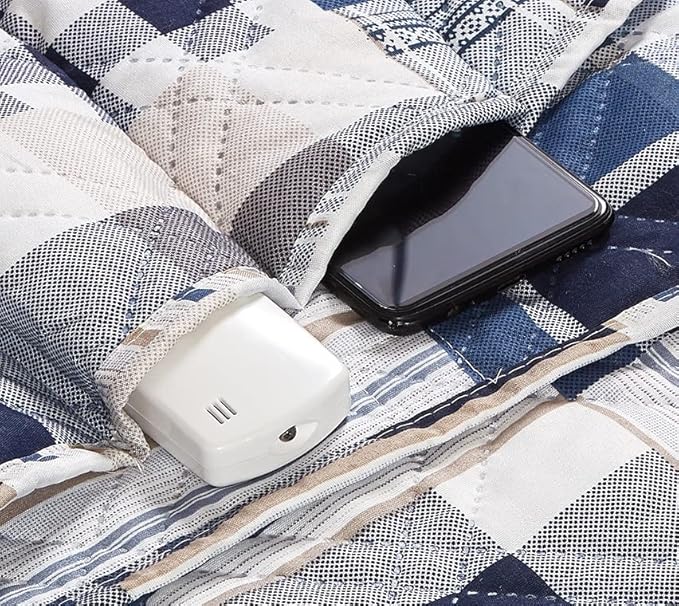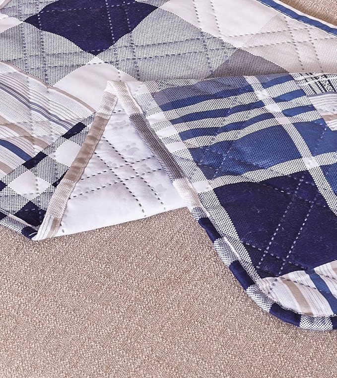 - ORGANIZER WITH UNIQUE DESIGN: Multi blue plaids and stripes patchwork patterns, with double diamond quilting, sophisticated, elegant, and unique. Keep your accessories organized and protect your couch armrest against mess. Pets friendly. Made to enhance decor.