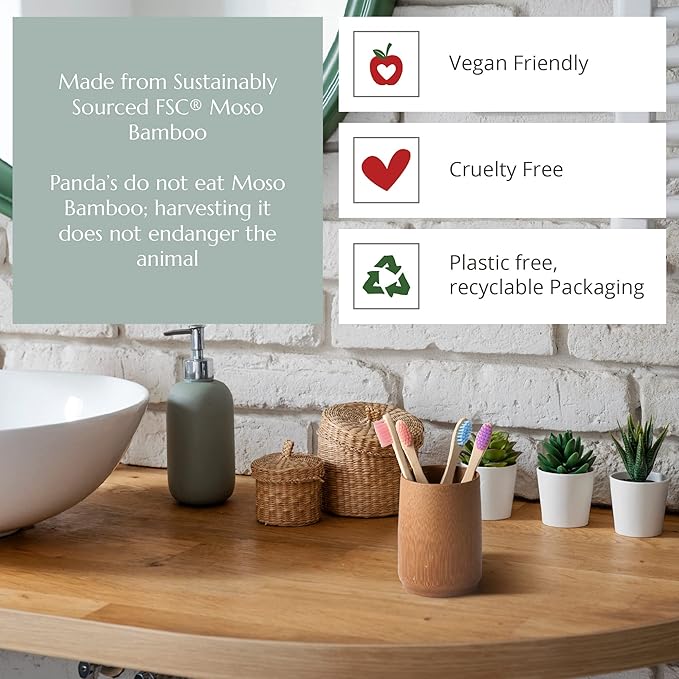 - 🌿 ORGANIC BAMBOO - Each manual toothbrush is made from a single piece of naturally sustainable bamboo, as such no glue is required. One of the fastest-growing plants in the world making it wonderfully sustainable. Bamboo is a versatile plant with many uses and snack of one of our favourite mammals the Giant Panda, who makes an appearance on our boxes. Within the right conditions Bamboo can regrow 12-18" within 24 hours, allowing this versatile crop to regrow quickly post harvest