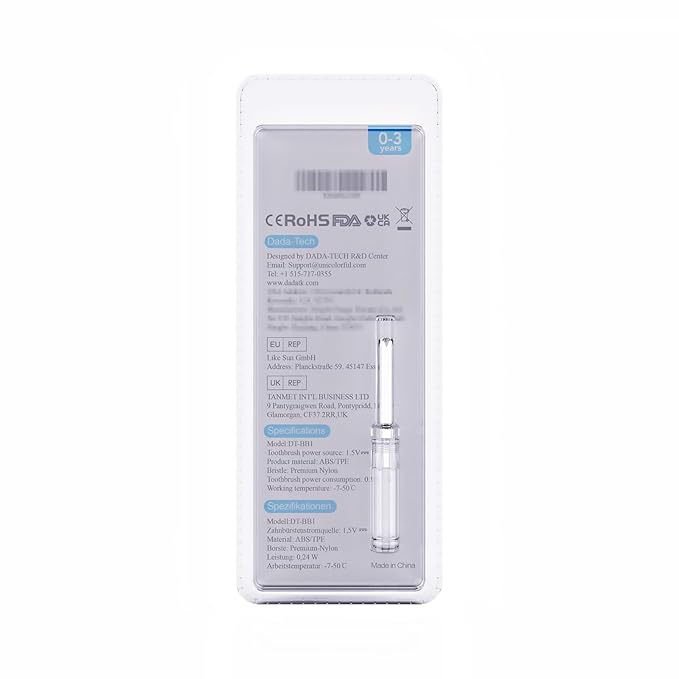 - Triple Safety Design for a Happy Oral Stage: The Dada-Tech toddler electric toothbrush features a battery safety lock compartment and enhanced bottom cover sealing technology to ensure 100% safety, no matter how much your child sucks or chews on it. The bristles are made with reinforced DuPont filaments using a copper wire folding technique to prevent shedding. The handle is made of BPA-free TPE with a smooth, rounded design, making it the perfect gift for children during their oral stage.