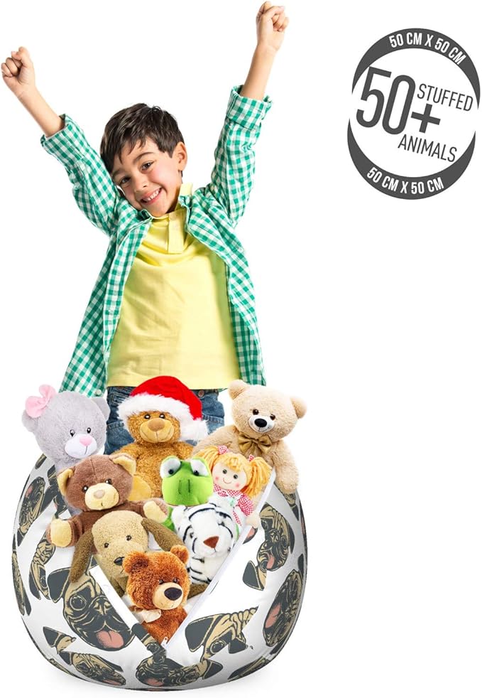 - Small size - You can stock over 50 plush toys in bean bag. Measurements: 22" W X 15" H when full.