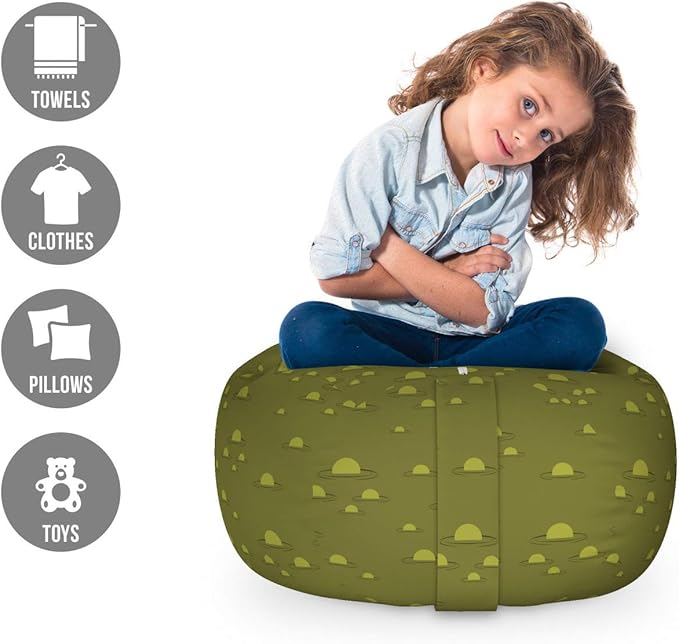 Lunarable Moss Green Storage Toy Bag Chair, Swamp Pattern with Bubbles Nature Eco Theme Environment Forest Monochrome, Stuffed Animal Organizer Washable Bag, Small Size, Pale Green