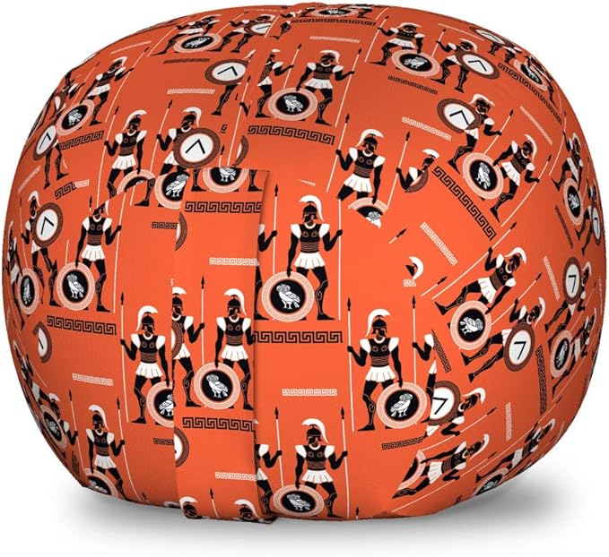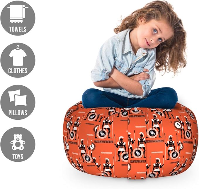 Lunarable Myth Storage Toy Bag Chair, Roman Men Illustration with Silhouette Forms, Stuffed Animal Organizer Washable Bag, Small Size, Sienna Black