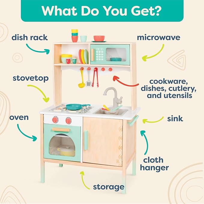 B. toys- Mini Chef Kitchenette- Pretend Play Wooden Play Kitchen – Kitchen for Kids – Kitchen Play Set & Accessories – (20+ Pcs)- 3 Years +