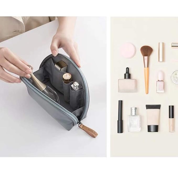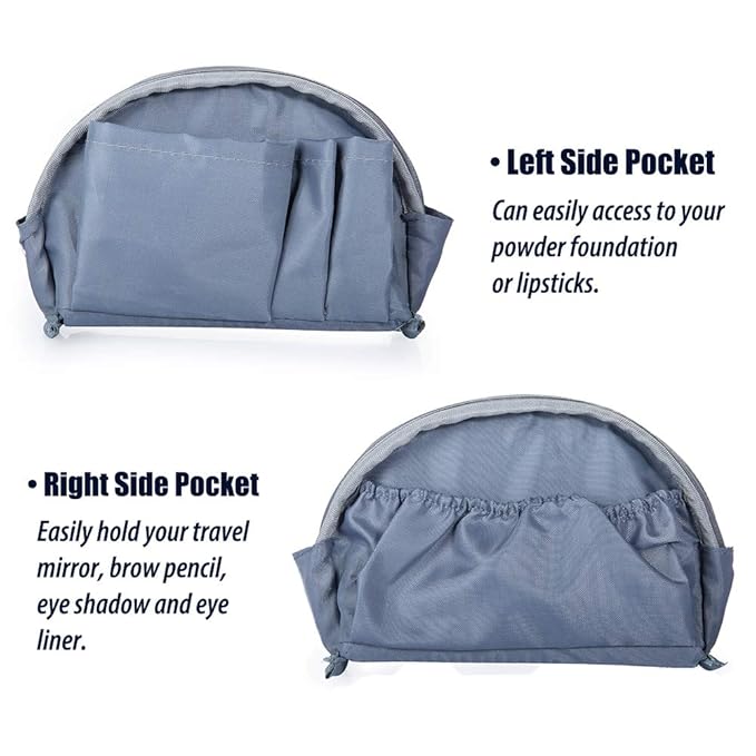 Hekyip Half Moon Cosmetic Beauty Bag for Purse Travel Handy Makeup Pouch for Women Girls (Grey-blue)