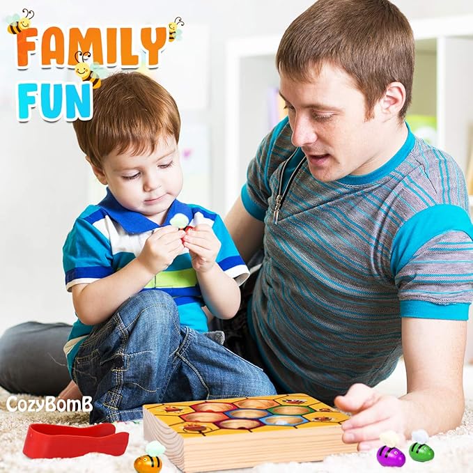 CozyBomB™ Clamp Bee to Hive Matching Game Toddler Fine Motor Skill Toy Montessori Toy Wooden Color Sorting Preschool Learning Educational Gifts Toys for 2 3 4 Years Old Birthdays Christmas Holidays