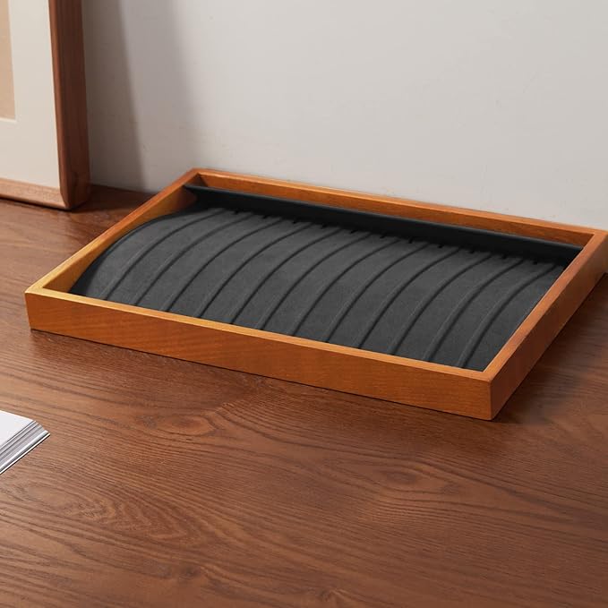 - ★Made of new quality solid wood and precious microfiber,the wood texture is very clear,more smooth and sturdy then old wood.The precious microfiber prevent your jewelry from scratching and knotting.