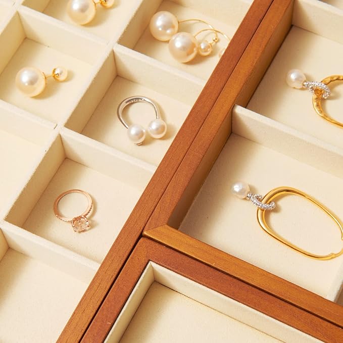 - ★Place your earrings,bracelet,bangle and watch in convenient compartments and store them in orderly fashion, The high-grade wood and microfiber will make jewelry more eye-catching.