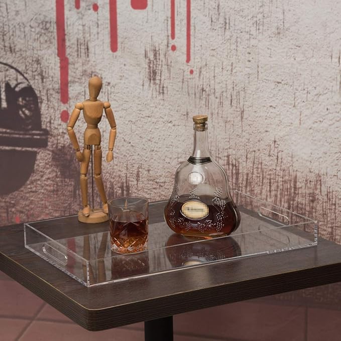 Clear Sturdy Acrylic Serving Tray with Handles-12x20Inch-Serving Coffee,Appetizer,Breakfast,Butler-Kitchen Countertop Makeup Drawer Organizer-Vanity Table Ottoman Tray-Decorative Tray