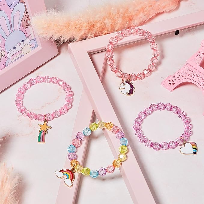 Hicarer 9 Pieces Unicorn Girls Bracelets for Toddler Little Girls Rainbow Bracelets Princess Colorful Cute Beaded Jewelry for Gift Goodie Bag Stuffers Birthday Party Favors(Crystal Style)