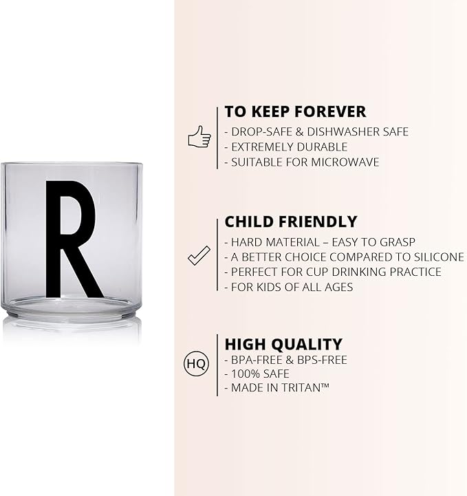 Design Letters Tritan Sippy Cups (A-Z) 6 Oz | Training Cup for Baby | Toddler Cup Unbreakable, BPA/BPS Free | Baby Cup Designed in Denmark | Tumbler for Kids Transparent