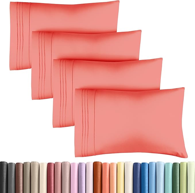 Queen Pillow Cases Set of 4 - Ultra Soft Hotel Quality Pillowcase Covers - Comfy, Cozy & Wrinkle Free - Shrinkage, Stain and Fade Resistant - Machine Washable Pillow Protectors - 4 Piece Set - Coral