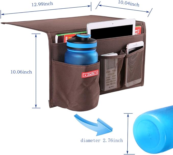 - Create extra storage that won't take up room on your bedside table; Perfect for storing magazines, books, cell phones, remotes, glasses, notebooks, and so on; The rounded pocket is perfect for holding water bottles.