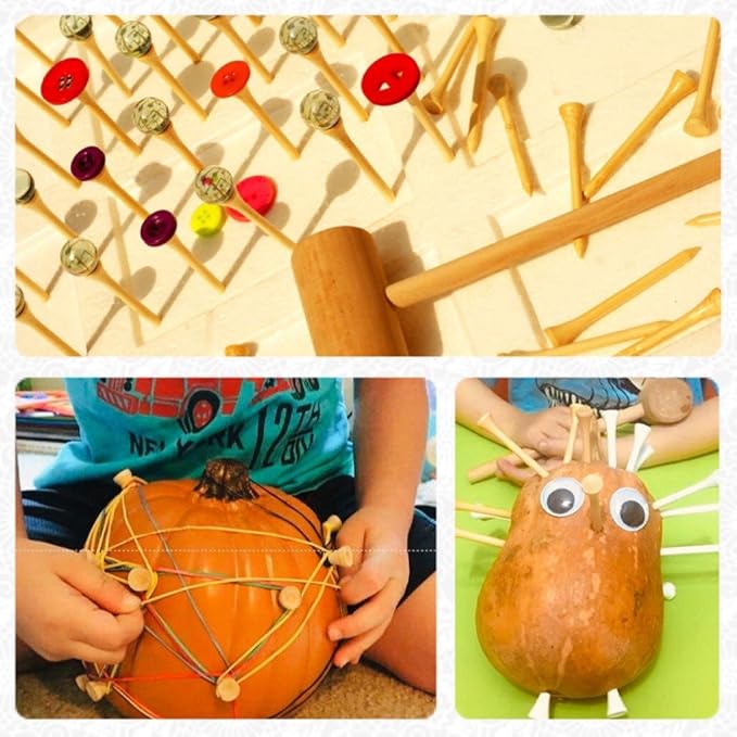- * ENHANCE FINE MOTOR SKILL: They work great for hammering bamboo nails into pumpkins, gourds, foam boxes, clays, potatoes,.... Improve hand-eye coordination ability for either boys or girls. Enhance their fine motors skill, strengthen their hands and arouse their creativity.