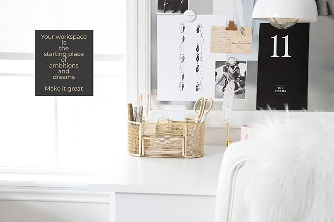 - π¦π§π₯π’π‘π π ππ§ππ ππ’π‘π¦π§π₯π¨ππ§ππ’π‘: Built from sturdy metal with a painted gold finish, this organizer delivers long-lasting durability while adding a fashionable accent to any desk setup.