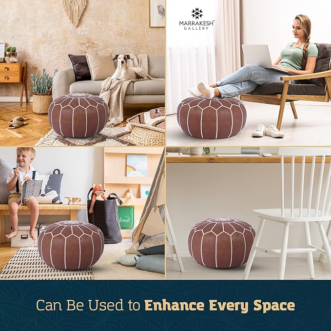 - Add Authentic Arabic Style, Coziness, and Color - Spruce up the space with a leather ottoman pouf designed to hold 10 - 12lbs., that adds some boho chic charm to the living room decor. It's the perfect furniture addition for cozying up with a book, as a foot rest, or an ottoman cover