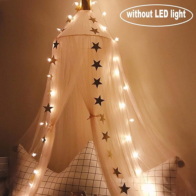 - FLUFFY 10 LAYERS HEM LACE DECOR CANOPYThe girls' dreamy canopy is made of high qualified 10 layers of yarn and wire. It's breathable, durable, soft, lightweight. Much fuller and more exquisite with high quality. Package with two style crowns, a bunch of dotted yellow stars, create a charming kid's room. NOT only for summer, suitable for the whole year