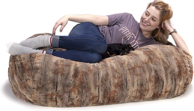 - Large bean bag lounger with premium faux fur cover for one adult or two children. Create a relaxed, informal setting or liven up your home theatre, dorm, game-room, or playroom.