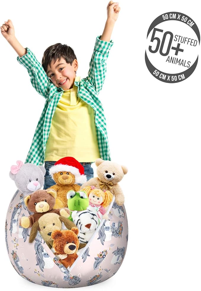 - Small size - You can stock over 50 plush toys in bean bag. Measurements: 22" W X 15" H when full.