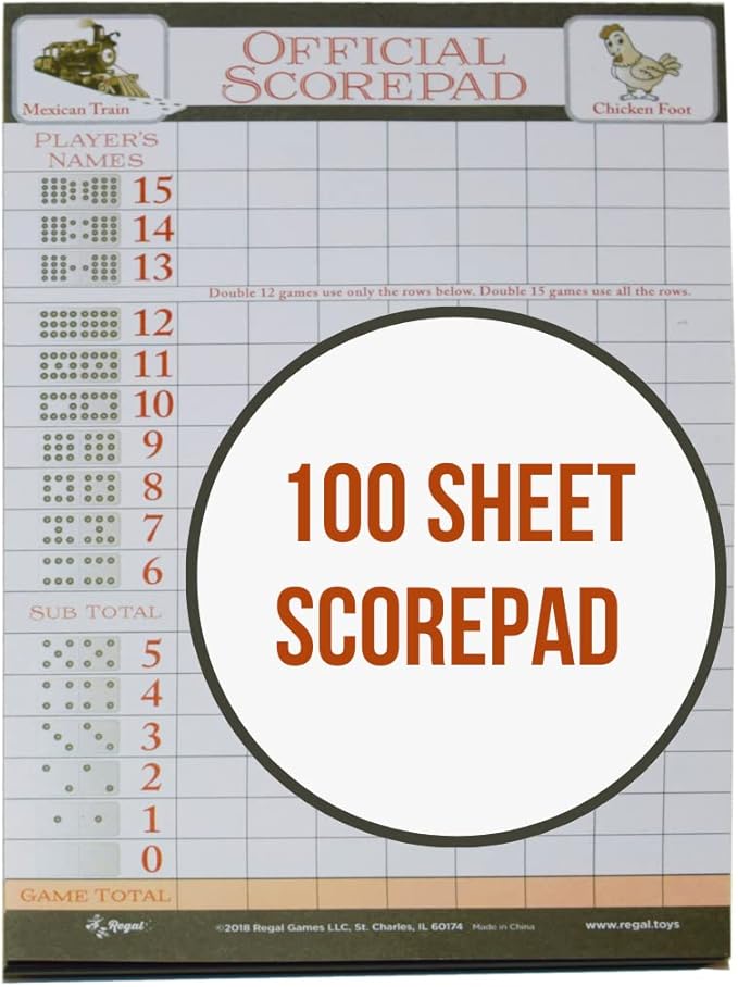 Regal Games Mexican Train Score Pads & Chicken Foot Dominoes Game for Adults - Ideal for Family Fun Game Night and Travel - 100 Sheets (8.25" x 5.5")