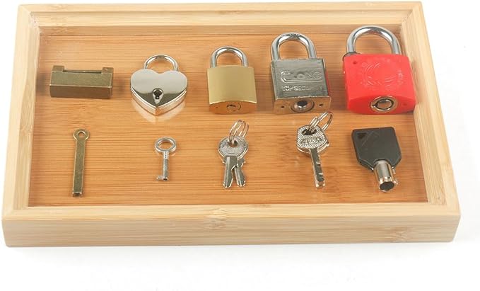 MEROCO Lock and Key with Wood Tray Set Fine Motor Skill Sorting Learning Toys Travel Games for Toddlers 3-5 Years