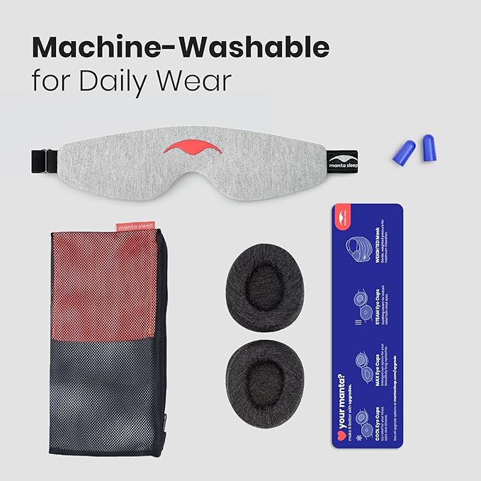 Manta Slim Sleep Mask – Ultra-Light Blackout Eye Mask with Adjustable Eye Cups, Soft Strap for Comfortable Sleep, Minimalist Design for Better Rest