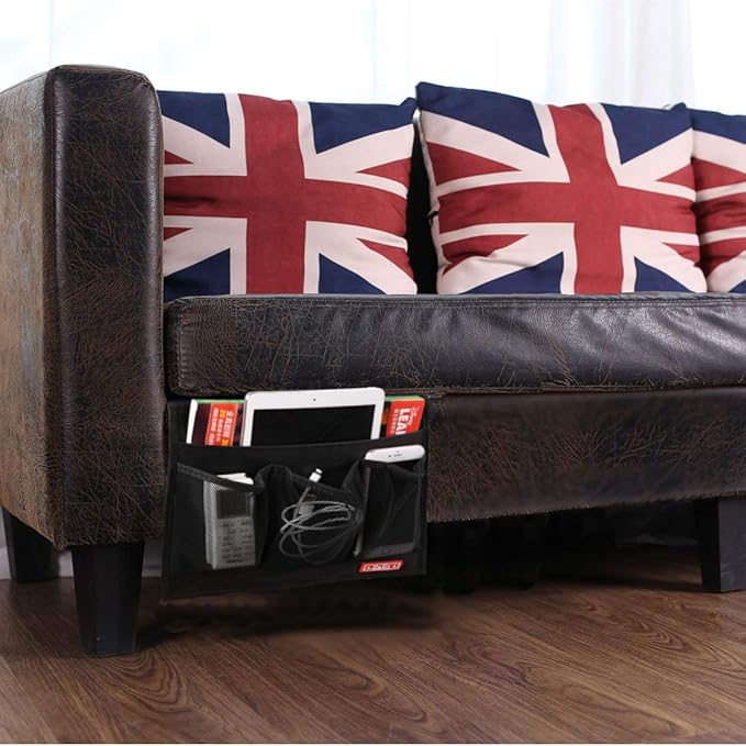 - Easy to install, insert the leather between your mattress and bed frame; The caddy has multiple pockets to keep items close at hand while you are relaxing in bed or on the Sofa.