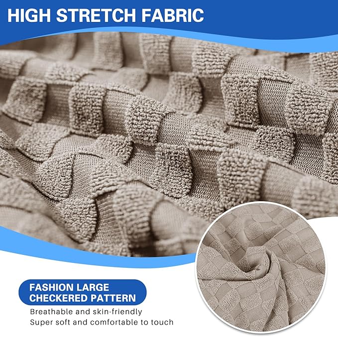 - UNIQUE DESIGN - Crafted from newest jacquard knitted fabric embellished with three-dimensional large checks, the cover for recliner chair looks upscale and stylish, provides decorative purpose to your recliner chair and living room! Features a side pocket design where you can put your remote, magazines and other small items for easy access. And our fabric adopts advanced active staining technique, so the color is more vivid, no fading, no pilling, wrinkle free, healthy and skin-friendly