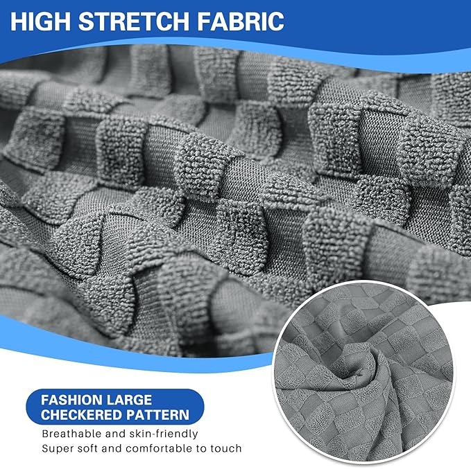 - UNIQUE DESIGN - Crafted from newest jacquard knitted fabric embellished with three-dimensional large checks, the cover for recliner chair looks upscale and stylish, provides decorative purpose to your recliner chair and living room! Features a side pocket design where you can put your remote, magazines and other small items for easy access. And our fabric adopts advanced active staining technique, so the color is more vivid, no fading, no pilling, wrinkle free, healthy and skin-friendly