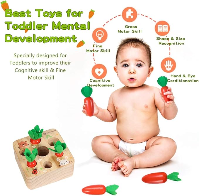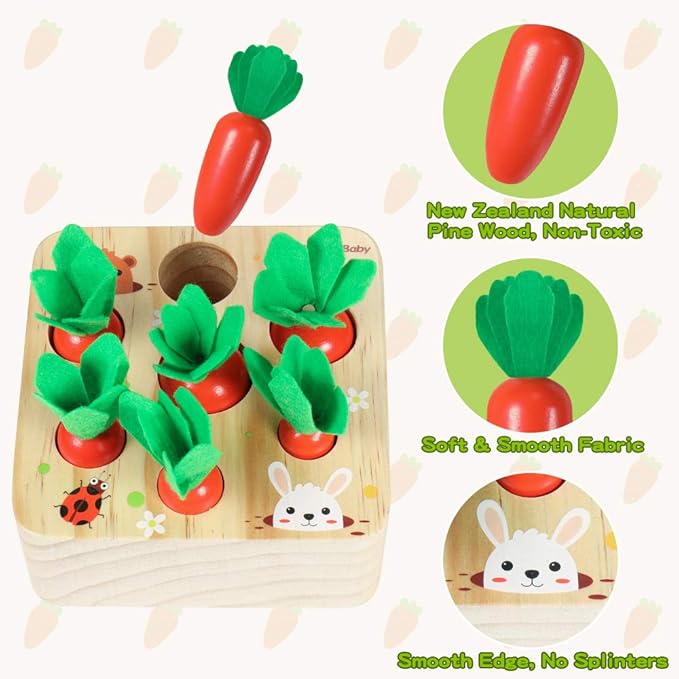- 【CARROT HARVEST TOY】Have fun time on harvesting carrot and developing fine motor skill, preschool Montessori toys for toddlers to harvest the right carrot