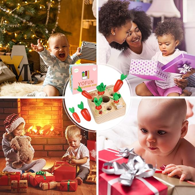 YOFUN Montessori Toys for Toddler - Carrot Harvest Wooden Matching Puzzle, Shape & Size Sorting Games for Developing Fine Motor Skill, Educational Gift for Baby Boys Girls, Made of Natural Pine Wood