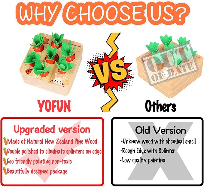 - 【FUN & CHALLENGING】Size of the carrots are different and somehow similar which requires mental works, let your kids love the challenge of finding where the carrot fit