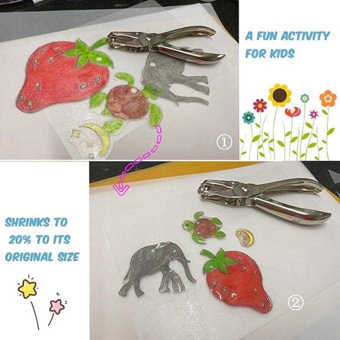 - So Fun and Easy to Use - just draw and color with maker or colored pencils, cut it and bake, it will shrink in your oven. Please need to punch a hole before bake.