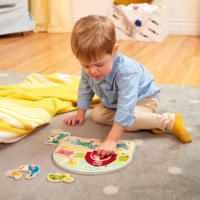- PEG PUZZLES: Sort and match with a farm-inspired wooden peg puzzle!