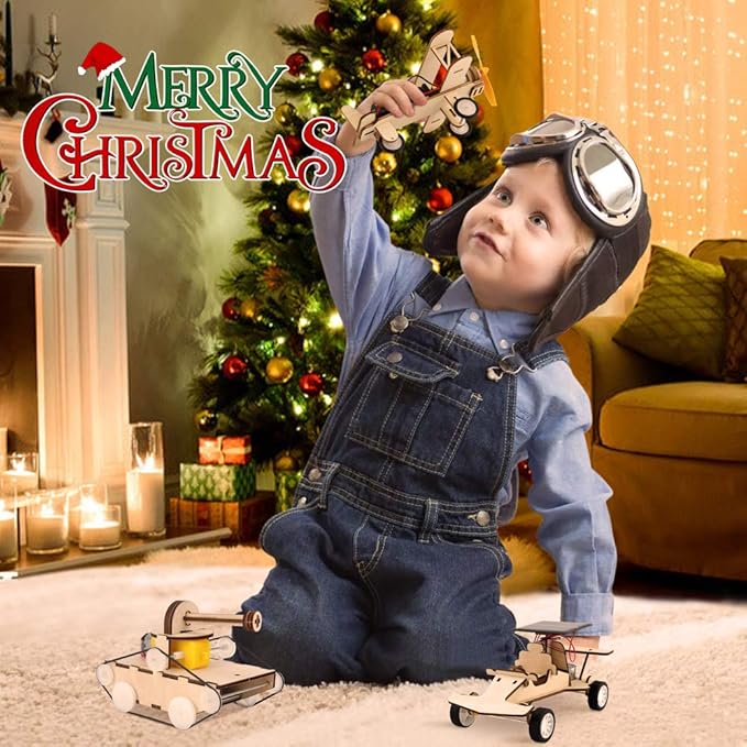 - Build Your Own Wooden Models - This 3 IN 1 stem kit comes with 53 wooden parts to create solar power kit, electronic tank vehicle and electric biplane glider which helps children build a solid foundation in Science, Technology, Engineering and Mathematics at an early age.