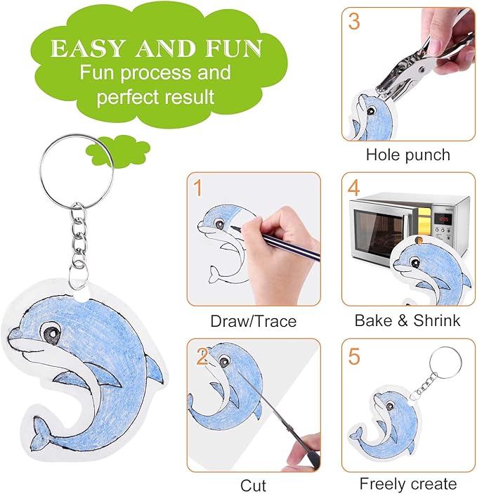 - Simple to use, draw and color your favorite pattern, cut it out with scissors and then punch a hole, it will shrink in your oven! It's such a fun craft to make