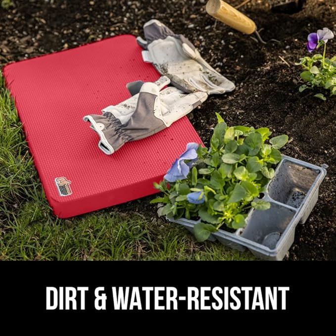 GORILLA GRIP Extra Thick Patent Pending Soft Foam Kneeling Pad, 2 PK, Supportive Large Cushion Knee Pads for Gardening, Baby Bath, Dirt and Water Resistant, Workout and Garden Supplies, 17.5x11, Red