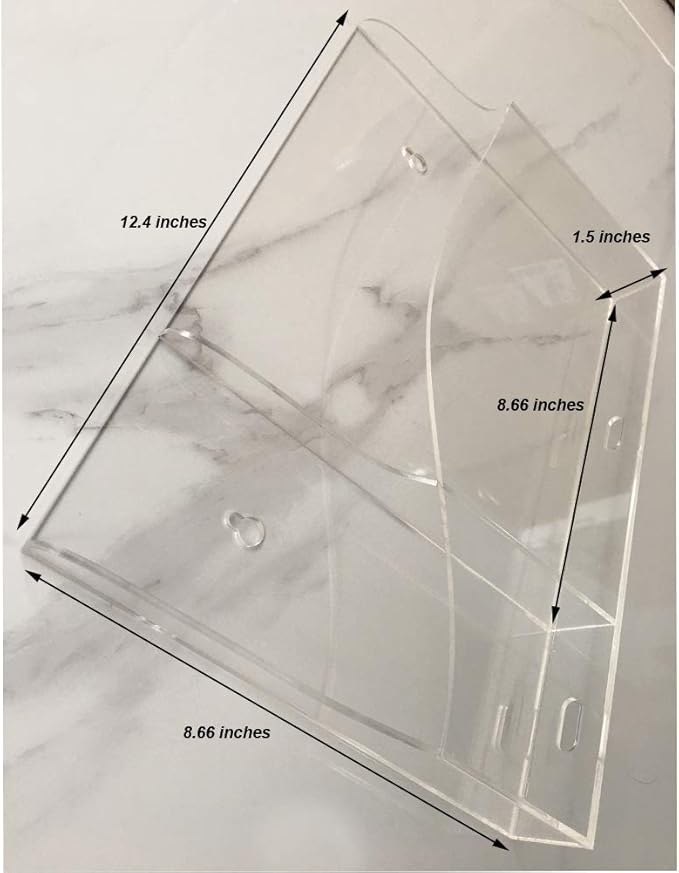 - Transparent Acrylic material, rounded corner design, no hand.