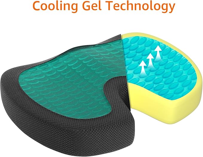 - OPTIMAL SUPPORT: This gel seat cushion is ideal for long sitting periods, featuring firm memory foam and a cooling gel layer that aligns with your body's natural contours