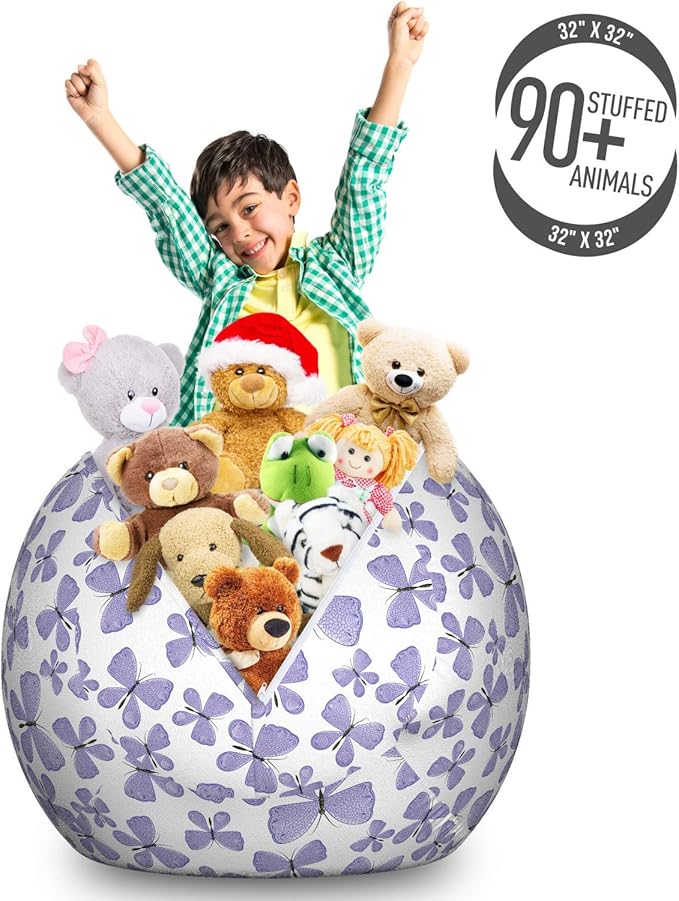 - Large size - You can stock over 90 plush toys in bean bag. Measurements: 30" W X 23" H when full.