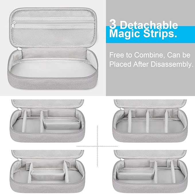 - CUSTOMIZABLE LARGE STORAGE SPACE: This electronic travel Organizer comes with 3 Magic Strip Dividers, allowing you to freely size or position the bottom compartment for flexible or optimal Storage Space for your charger, MacBook power adapter, hard drive, power bank…..; Premium Mesh Pockets for cables, cords, hard drives; This Electronics Travel Packing Organizer will keep every item organized and easily findable, no worry about the mess and tangle anymore.