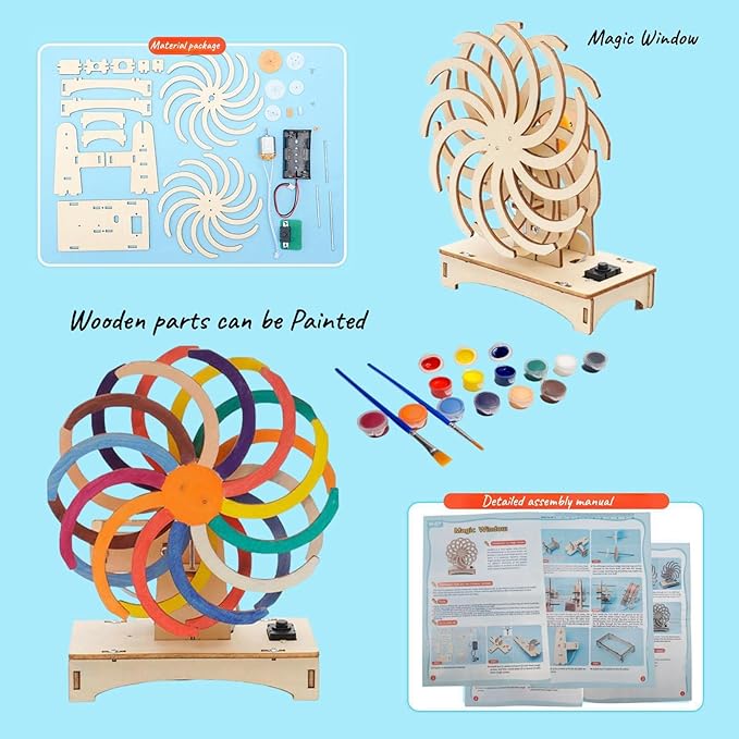 - 6 in 1 STEM Kits for Kids: Contain 6 different model kits, Electric Gear Car, Sun-Earth-Moon Model, Balance Bird, Wooden Tank, Carousel Model and Magic Window